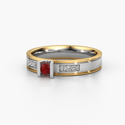 This modern ladies wedding ring is a stunning, contemporary wedding ring which truly symbolizes your unique love! Perfectly suited for men with a contemporary style. Simply customize the ring to your liking. Our goldsmith would take on any challenge of creating a perfect ring and will work on your ring, designed by you, in our own artisan studio. He will carefully and passionately create your WH2108L14A wedding ring by hand whilst using the most modern techniques, combined with pure craftsmanship. And this results in a unique, contemporary ring! This modern WH2108L14A wedding ring is set with round ruby, is ±0.16 in wide and has a shiny finish. You can choose the combination of precious metals of your preference in our online tool. Anything goes! It is wise to browse through the characteristics of each different precious metal. For example, gold and silver are softer metals. Carat is determined by the amount of added extra metals. If the goldsmith doesn't add a lot, carat is higher and the wedding ring will be softer. If he adds more metals, the jewel has a lower amount of carat. A softer precious metal can still be used for your modern wedding ring! If you prefer a precious metal which will last a lifetime, we recommend platinum. This is the most solid and durable metal our goldsmith uses.Be inspired by our designs, and adjust this wedding ring to your own personal taste: wider or smaller, shiny or matte? No problem! Even if you have ideas of your own for special wedding rings, our jewellery designers are lined up to help you design the ring of your dreams. don't hesitate to contact us!Because we design and deliver our own wedding rings, we can offer you wedding rings at a price you won't find anywhere else. A ring is made to order, which helps prevent excess supplies, so we can make you a great price offer.To make it easier for you, we offer a 30 day return policy. Check our terms and conditions.