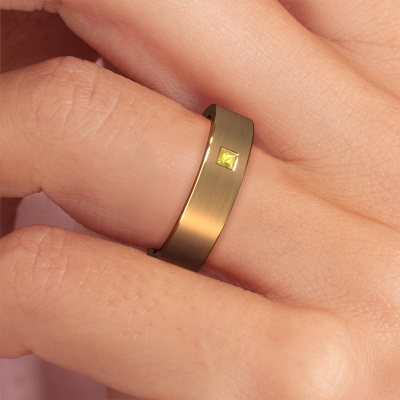This modern ladies wedding ring is a stunning, contemporary wedding ring which truly symbolizes your unique love! Perfectly suited for men with a contemporary style. Simply customize the ring to your liking. Our goldsmith would take on any challenge of creating a perfect ring and will work on your ring, designed by you, in our own artisan studio. He will carefully and passionately create your WH0101L15BMSQ wedding ring by hand whilst using the most modern techniques, combined with pure craftsmanship. And this results in a unique, contemporary ring! This modern WH0101L15BMSQ wedding ring is set with princess yellow sapphire, is ±0.20 in wide and has a matte finish. After designing your ring, our jewel designer will start working on it. He will make a graphic 3D design of your wedding ring. This can also be used to make a dummy ring. Simply order a dummy ring and see for yourself how your ring will turn out. Subsequently, our expert goldsmith will create your ring in our own artisan studio. We use eco-friendly gold, so you get a ring, we are proud of, which looks good inside and out. You can also send us your own gold. Because we create your ring by hand, we can use your own gold. Our goal is to create an exquisite sparkling wedding ring just as envisioned it!By the way, you can be inspired by this wedding ring and have it further adjusted to your taste. Do you prefer a smaller band or a wider one? Do you prefer a shiny ring or a matte one? Anything is possible. Also, if you have an idea of your own for extraordinary wedding rings, or if you have seen a beautiful set somewhere else that you really like and would like to have adjusted to your personal taste: no problem! don't hesitate to contact us. Our designers will gladly discuss your possibilities with you!By combining our modern techniques with ancient crafting, we can design and customize the finest quality jewels with the utmost care for you at the best price. Our wedding rings are always priced 30% lower than those of other jewellers. We make wedding rings to order so we don't have to maintain a large stock.To make it easier for you, we offer a 30 day return policy. Check our terms and conditions.