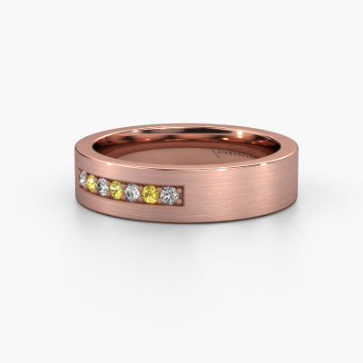 To create your ladies wedding ring in our artisan studio, we use the most modern techniques, combined with ancient craftsmanship. The end result is this modern WH0112L15BM wedding ring, which is crafted to perfection by hand by our goldsmiths. A ring that fills us with pride. This rose gold WH0112L15BM ladies wedding ring with flat profile has an ±0.20 in width and has a matte finish with yellow sapphire. Gold represents love and therefore our goldsmith loves using it in the design of your modern wedding ring. We are a proud member of the Responsible Jewellery Council. This means we only use eco-friendly gold. Something we take great pride in, obviously. It is also possible to use your own gold in the design of your wedding ring. Each jewel is made by hand in our own artisan studio so we can offer this option. This gives you the opportunity to add an extra personal touch to your ring. A ring with its own history!Do you have specific wishes? Like a shiny ring, or a matte one? A wider band, or a smaller one? The possibilities of this wedding ring are endless. Be sure to contact our designers to adjust your ring to your personal taste. Did you see a ring somewhere, or do you have some special ideas of your own? Then don't hesitate to contact our designers and discuss your ideas for your own set of beautiful wedding rings. We are up for the challenge of creating the ring exactly the way you want it!After receiving your order, our goldsmiths will start the creative process of making your wedding rings in our own crafting studio. We don't keep stock. This is advantageous because these costs will not be passed on to you. Therefore, we can offer the finest quality jewellery at exceptionally low prices.To make it easier for you, we offer a 30 day return policy. Check our terms and conditions.