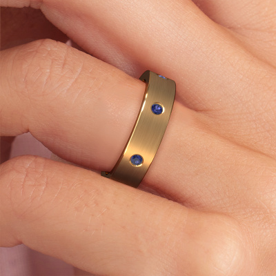 The modern Eternity wedding ring is a ring with a beautiful symbolic meaning. Because there appears to be no beginning nor end to the row of sapphire. A beautiful way of expressing your everlasting love. A ring to wear until the end of all time, as a symbol of your union. This eternity WH0105L15BM ladies wedding ring has a width of ±0.20 in and is set with sapphire 2 mm. After ordering your wedding ring, our goldsmith will start creating your wedding ring immediately. Did you know we use the latest modern techniques, combined with ancient craftsmanship? This helps to create a 3D design of your jewel. You can order a dummy ring, if you please. This way you can check if the wedding ring meets your standard. Then, our goldsmith, who strives for perfection, will create your ring in our own artisan studio completely by hand. We feel passionate creating a unique ring each time. One which is finished to perfection. In the end, you get a wedding ring which matches your wishes.By the way, you can be inspired by this wedding ring and have it further adjusted to your taste. Do you prefer a smaller band or a wider one? Do you prefer a shiny ring or a matte one? Anything is possible. Also, if you have an idea of your own for extraordinary wedding rings, or if you have seen a beautiful set somewhere else that you really like and would like to have adjusted to your personal taste: no problem! don't hesitate to contact us. Our designers will gladly discuss your possibilities with you!Because we design and deliver our own wedding rings, we can offer you wedding rings at a price you won't find anywhere else. A ring is made to order, which helps prevent excess supplies, so we can make you a great price offer.To make it easier for you, we offer a 30 day return policy. Check our terms and conditions.
