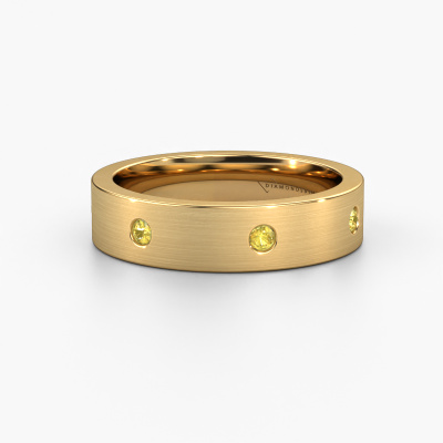 The modern Eternity wedding ring is a ring with a beautiful symbolic meaning. Because there appears to be no beginning nor end to the row of yellow sapphire. A beautiful way of expressing your everlasting love. A ring to wear until the end of all time, as a symbol of your union. This eternity WH0105L15BM ladies wedding ring has a width of ±0.20 in and is set with yellow sapphire 2 mm. After ordering your wedding ring, our goldsmith will start creating your wedding ring immediately. Did you know we use the latest modern techniques, combined with ancient craftsmanship? This helps to create a 3D design of your jewel. You can order a dummy ring, if you please. This way you can check if the wedding ring meets your standard. Then, our goldsmith, who strives for perfection, will create your ring in our own artisan studio completely by hand. We feel passionate creating a unique ring each time. One which is finished to perfection. In the end, you get a wedding ring which matches your wishes.By the way, you can be inspired by this wedding ring and have it further adjusted to your taste. Do you prefer a smaller band or a wider one? Do you prefer a shiny ring or a matte one? Anything is possible. Also, if you have an idea of your own for extraordinary wedding rings, or if you have seen a beautiful set somewhere else that you really like and would like to have adjusted to your personal taste: no problem! don't hesitate to contact us. Our designers will gladly discuss your possibilities with you!Because we design and deliver our own wedding rings, we can offer you wedding rings at a price you won't find anywhere else. A ring is made to order, which helps prevent excess supplies, so we can make you a great price offer.To make it easier for you, we offer a 30 day return policy. Check our terms and conditions.