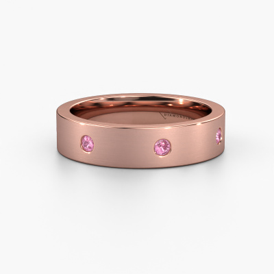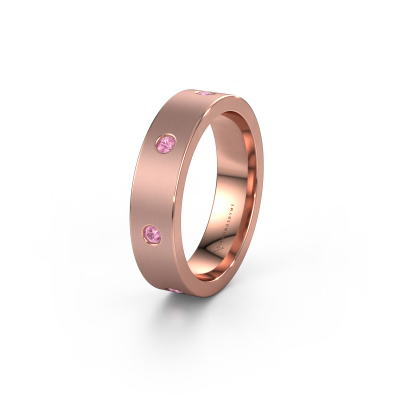 The modern Eternity wedding ring is a ring with a beautiful symbolic meaning. Because there appears to be no beginning nor end to the row of pink sapphire. A beautiful way of expressing your everlasting love. A ring to wear until the end of all time, as a symbol of your union. This eternity WH0105L15BM ladies wedding ring has a width of ±0.20 in and is set with pink sapphire 2 mm. After ordering your wedding ring, our goldsmith will start creating your wedding ring immediately. Did you know we use the latest modern techniques, combined with ancient craftsmanship? This helps to create a 3D design of your jewel. You can order a dummy ring, if you please. This way you can check if the wedding ring meets your standard. Then, our goldsmith, who strives for perfection, will create your ring in our own artisan studio completely by hand. We feel passionate creating a unique ring each time. One which is finished to perfection. In the end, you get a wedding ring which matches your wishes.By the way, you can be inspired by this wedding ring and have it further adjusted to your taste. Do you prefer a smaller band or a wider one? Do you prefer a shiny ring or a matte one? Anything is possible. Also, if you have an idea of your own for extraordinary wedding rings, or if you have seen a beautiful set somewhere else that you really like and would like to have adjusted to your personal taste: no problem! don't hesitate to contact us. Our designers will gladly discuss your possibilities with you!Because we design and deliver our own wedding rings, we can offer you wedding rings at a price you won't find anywhere else. A ring is made to order, which helps prevent excess supplies, so we can make you a great price offer.To make it easier for you, we offer a 30 day return policy. Check our terms and conditions.