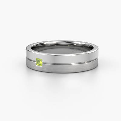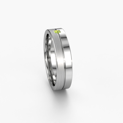 A unique two-tone white gold ladies wedding ring, designed by you, and then artfully crafted by our goldsmith in our own artisan studio! A beautiful symbol, reflecting your love, which you carry with you for a lifetime! Each ring we offer is artfully forged by hand in our own crafting studio. This makes it possible for us to create you a ring which is customized to your liking, completely mat/shiny your style. This modern WH0201L15ASQPM wedding ring is set with peridot, is ±0.20 in wide and has a mat/shiny finish. You can choose the combination of precious metals of your preference in our online tool. Anything goes! It is wise to browse through the characteristics of each different precious metal. For example, gold and silver are softer metals. Carat is determined by the amount of added extra metals. If the goldsmith doesn't add a lot, carat is higher and the wedding ring will be softer. If he adds more metals, the jewel has a lower amount of carat. A softer precious metal can still be used for your modern wedding ring! If you prefer a precious metal which will last a lifetime, we recommend platinum. This is the most solid and durable metal our goldsmith uses.Be inspired by our designs, and adjust this wedding ring to your own personal taste: wider or smaller, shiny or matte? No problem! Even if you have ideas of your own for special wedding rings, our jewellery designers are lined up to help you design the ring of your dreams. don't hesitate to contact us!After receiving your order, our goldsmiths will start the creative process of making your wedding rings in our own crafting studio. We don't keep stock. This is advantageous because these costs will not be passed on to you. Therefore, we can offer the finest quality jewellery at exceptionally low prices.To make it easier for you, we offer a 30 day return policy. Check our terms and conditions.