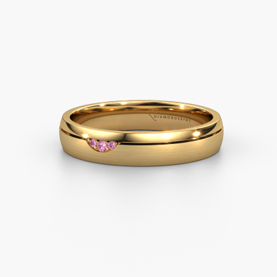 A unique two-tone gold ladies wedding ring, designed by you, and then artfully crafted by our goldsmith in our own artisan studio! A beautiful symbol, reflecting your love, which you carry with you for a lifetime! Each ring we offer is artfully forged by hand in our own crafting studio. This makes it possible for us to create you a ring which is customized to your liking, completely mat/shiny your style. This contemporary WH0334L24X wedding ring is set with pink sapphire, is ±0.16 in wide and has a mat/shiny finish. Choosing a wedding ring is not done on a whim. In the end, you want a ring that completely matches your style and preferences. A reflection of your love and relationship. A ring to last a lifetime. A symbol of all that unites you. Creating your dream ring is what gets us excited. This is artfully done by hand in our own crafting studio, so we can create your ring to perfection. The most rewarding job in the world!Do you have specific wishes regarding your wedding ring, but are you having difficulties finding the design on our website? The be sure to contact our designers! For instance, we can make the band smaller or wider. Do you prefer a matte finish? We can do that! Engravings are a great way of personalizing your rings, and applicable on most designs. Or, if you have an idea of your own for your extraordinary wedding rings, contact us! Our designers are up for the challenge of designing the ring of your dreams!Because we design our wedding rings ourselves, and deliver it directly to you, we can offer you wedding rings at a price you won't find anywhere else. Our rings are made to order, which helps prevent excess supplies, so we can make you a great price offer.To make it easier for you, we offer a 30 day return policy. Check our terms and conditions.