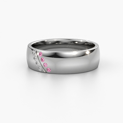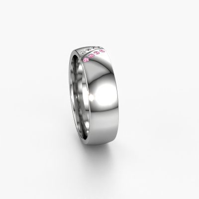 A unique two-tone platinum ladies wedding ring, designed by you, and then artfully crafted by our goldsmith in our own artisan studio! A beautiful symbol, reflecting your love, which you carry with you for a lifetime! Each ring we offer is artfully forged by hand in our own crafting studio. This makes it possible for us to create you a ring which is customized to your liking, completely shiny your style. This modern WH1201L26AP8 wedding ring is set with pink sapphire, is ±0.24 in wide and has a shiny finish. After ordering your wedding ring, our goldsmith will start creating your wedding ring immediately. Did you know we use the latest modern techniques, combined with ancient craftsmanship? This helps to create a 3D design of your jewel. You can order a dummy ring, if you please. This way you can check if the wedding ring meets your standard. Then, our goldsmith, who strives for perfection, will create your ring in our own artisan studio completely by hand. We feel passionate creating a unique ring each time. One which is finished to perfection. In the end, you get a wedding ring which matches your wishes.This wedding ring can also serve as a source of inspiration. Would you like the ring to have a matte or shiny finish (at no additional cost), or would you prefer it to be wider or narrower? Anything is possible. Because there are countless variations, we can’t show everything on our website. Do you have an idea for beautiful wedding rings, or have you seen a stunning set of wedding rings elsewhere? Feel free to contact us; our designers are ready to assist you.Because we design and deliver our own wedding rings, we can offer you wedding rings at a price you won't find anywhere else. A ring is made to order, which helps prevent excess supplies, so we can make you a great price offer.To make it easier for you, we offer a 30 day return policy. Check our terms and conditions.