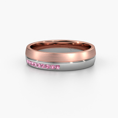 A unique two-tone rose gold ladies wedding ring, designed by you, and then artfully crafted by our goldsmith in our own artisan studio! A beautiful symbol, reflecting your love, which you carry with you for a lifetime! Each ring we offer is artfully forged by hand in our own crafting studio. This makes it possible for us to create you a ring which is customized to your liking, completely mat/shiny your style. This fashionable WH0209L25APM wedding ring is set with pink sapphire, is ±0.20 in wide and has a mat/shiny finish. After ordering your wedding ring, our goldsmith will start creating your wedding ring immediately. Did you know we use the latest modern techniques, combined with ancient craftsmanship? This helps to create a 3D design of your jewel. You can order a dummy ring, if you please. This way you can check if the wedding ring meets your standard. Then, our goldsmith, who strives for perfection, will create your ring in our own artisan studio completely by hand. We feel passionate creating a unique ring each time. One which is finished to perfection. In the end, you get a wedding ring which matches your wishes.Do you have special preferences regarding your wedding ring? For instance, a smaller or a wider band? Or perhaps a shiny or a matte ring? There are numerous variations possible. You can always discuss the possibilities with our jewellery designers. If you have certain wedding rings in mind, our designers will gladly help by drawing the rings of your dreams. Be sure to contact us!After receiving your order, our goldsmiths will passionately start the creative process of making your wedding rings in our own artisan studio. Because we do not maintain a large stockpile, we can offer our jewellery at a lower price than other jewellers. Our pricing is proof of that! We offer top quality jewels at lowest price, guaranteed.To make it easier for you, we offer a 30 day return policy. Check our terms and conditions.