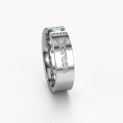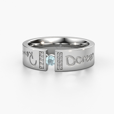 A unique wedding ring with aquamarine! What makes this ladies wedding ring WH2094L16C special, is that you can have it engraved with a special text, which has meaning to you. A word, a short phrase or part of the lyrics to a song. Whichever text is most meaningful to you. Memorialize it as an exquisite engravement on this modern wedding ring. This own Text ladies wedding ring has an ±0.24 in width. You can choose the combination of precious metals of your preference in our online tool. Anything goes! It is wise to browse through the characteristics of each different precious metal. For example, gold and silver are softer metals. Carat is determined by the amount of added extra metals. If the goldsmith doesn't add a lot, carat is higher and the wedding ring will be softer. If he adds more metals, the jewel has a lower amount of carat. A softer precious metal can still be used for your modern wedding ring! If you prefer a precious metal which will last a lifetime, we recommend platinum. This is the most solid and durable metal our goldsmith uses.This wedding ring can also serve as a source of inspiration. Would you like the ring to have a matte or shiny finish (at no additional cost), or would you prefer it to be wider or narrower? Anything is possible. Because there are countless variations, we can’t show everything on our website. Do you have an idea for beautiful wedding rings, or have you seen a stunning set of wedding rings elsewhere? Feel free to contact us; our designers are ready to assist you.By combining our modern techniques with ancient crafting, we can design and customize the finest quality jewels with the utmost care for you at the best price. Our wedding rings are always priced 30% lower than those of other jewellers. We make wedding rings to order so we don't have to maintain a large stock.To make it easier for you, we offer a 30 day return policy. Check our terms and conditions.