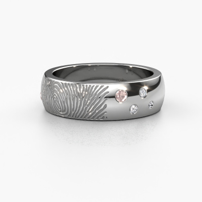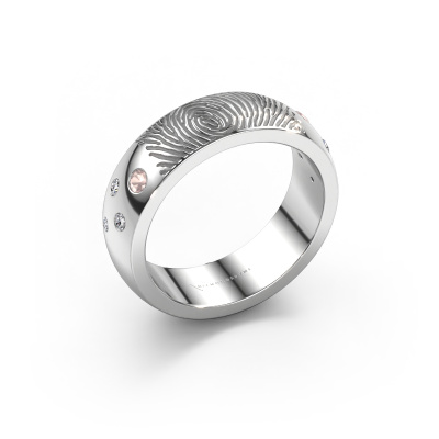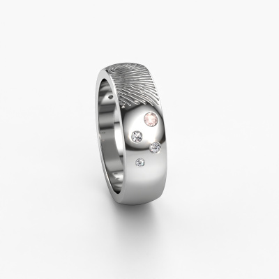 What could be more unique than a fingerprint? That makes this unisex wedding ring with morganite champagne special. A personal fingerprint of your loved one, engraved tot the symbol of your everlasting love. Wouldn't it be lovely to slide this modern wedding ring around the finger of your partner on your wedding day? How does it work? First you order the wedding ring after customizing it to your liking. Once your order is placed, you send us an e-mail with the fingerprint you would like to use. For further instructions on how to make a fingerprint, check our database at the bottom of this page. This Minke wedding ring has an ±0.24 in width.