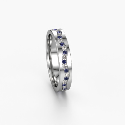 Did you know the Eternity wedding ring not only looks good, but that this wedding ring also has its own beautiful symbolical meaning? The Eternity wedding ring, with perfectly aligned smaller sized gemstones, represents your eternal love. Because the ring is pave set with gemstones, it appears to have no beginning nor end. Beautiful, wouldn't you agree? This wavy details WH0803L14AP ladies wedding ring has a width of ±0.16 in and is set with sapphire 1.3 mm. The jewel designer, member of a specialized team, will make a graphic 3D design of your wedding ring. If it pleases you, you can also order a ring dummy so you can try it on and see your ring before creation. Subsequently, our goldsmith will create your unique wedding ring with great care in our own crafting studio. A meticulous job, because both creating as well as finishing your ring requires a keen eye. And that is what makes our craft special. Your unique wedding ring is the result of true passionate craftsmanship!This wedding ring can also serve as a source of inspiration. Would you like the ring to have a matte or shiny finish (at no additional cost), or would you prefer it to be wider or narrower? Anything is possible. Because there are countless variations, we can’t show everything on our website. Do you have an idea for beautiful wedding rings, or have you seen a stunning set of wedding rings elsewhere? Feel free to contact us; our designers are ready to assist you.Because we design and deliver our own wedding rings, we can offer you wedding rings at a price you won't find anywhere else. A ring is made to order, which helps prevent excess supplies, so we can make you a great price offer.To make it easier for you, we offer a 30 day return policy. Check our terms and conditions.
