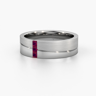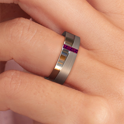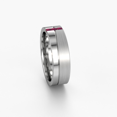 A unique two-tone platinum ladies wedding ring, designed by you, and then artfully crafted by our goldsmith in our own artisan studio! A beautiful symbol, reflecting your love, which you carry with you for a lifetime! Each ring we offer is artfully forged by hand in our own crafting studio. This makes it possible for us to create you a ring which is customized to your liking, completely mat/shiny your style. This modern WH0906L16A wedding ring is set with rhodolite, is ±0.24 in wide and has a mat/shiny finish. You can choose the combination of precious metals of your preference in our online tool. Anything goes! It is wise to browse through the characteristics of each different precious metal. For example, gold and silver are softer metals. Carat is determined by the amount of added extra metals. If the goldsmith doesn't add a lot, carat is higher and the wedding ring will be softer. If he adds more metals, the jewel has a lower amount of carat. A softer precious metal can still be used for your modern wedding ring! If you prefer a precious metal which will last a lifetime, we recommend platinum. This is the most solid and durable metal our goldsmith uses.Do you have special preferences regarding your wedding ring? For instance, a smaller or a wider band? Or perhaps a shiny or a matte ring? There are numerous variations possible. You can always discuss the possibilities with our jewellery designers. If you have certain wedding rings in mind, our designers will gladly help by drawing the rings of your dreams. Be sure to contact us!After receiving your order, our goldsmiths will start the creative process of making your wedding rings. We don't keep stock. This is advantageous because these costs will not be passed on to you. Therefore, our quality wedding rings are always priced 30 percent lower than those of other jewellers.To make it easier for you, we offer a 30 day return policy. Check our terms and conditions.