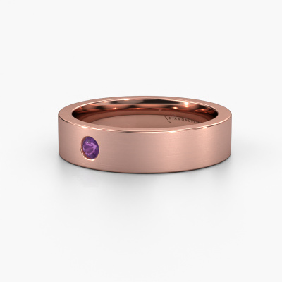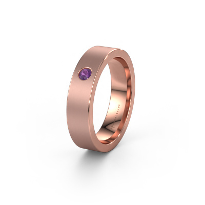 This modern matte ladies wedding ring with flat profile is an extraordinary ring to memorialize your love. A timeless wedding ring set with carefully selected amethysten. In this example, the rose gold WH0101L15BM wedding ring is set with round amethyst 2.7 mm. Our goldsmiths use the latest modern techniques, combined with ancient craftsmanship and they will make your ring in our own artisan studio. Resulting in a unique, handmade ±0.20x0.08 in wedding ring, which was created to perfection, and matches your style flawlessly. After ordering your wedding ring, our goldsmith will start creating your wedding ring immediately. Did you know we use the latest modern techniques, combined with ancient craftsmanship? This helps to create a 3D design of your jewel. You can order a dummy ring, if you please. This way you can check if the wedding ring meets your standard. Then, our goldsmith, who strives for perfection, will create your ring in our own artisan studio completely by hand. We feel passionate creating a unique ring each time. One which is finished to perfection. In the end, you get a wedding ring which matches your wishes.By the way, you can be inspired by this wedding ring and have it further adjusted to your taste. Do you prefer a smaller band or a wider one? Do you prefer a shiny ring or a matte one? Anything is possible. Also, if you have an idea of your own for extraordinary wedding rings, or if you have seen a beautiful set somewhere else that you really like and would like to have adjusted to your personal taste: no problem! don't hesitate to contact us. Our designers will gladly discuss your possibilities with you!After receiving your order, our goldsmiths will passionately start the creative process of making your wedding rings in our own artisan studio. Because we do not maintain a large stockpile, we can offer our jewellery at a lower price than other jewellers. Our pricing is proof of that! We offer top quality jewels at lowest price, guaranteed.To make it easier for you, we offer a 30 day return policy. Check our terms and conditions.