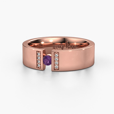 A unique wedding ring with amethyst! What makes this ladies wedding ring WH2096L16C special, is that you can have it engraved with a special text, which has meaning to you. A word, a short phrase or part of the lyrics to a song. Whichever text is most meaningful to you. Memorialize it as an exquisite engravement on this modern wedding ring. This own Text ladies wedding ring has an ±0.24 in width. Simply customize your gemstones and colours with our online tool. Our jewel designers will make a 3D drawing of your design, so you can see the result. Our goldsmiths will subsequently make your wedding ring by hand, according ancient craftsmanship. Our goal is to make the wedding ring you have in mind. A unique wedding ring to match your style completely!This wedding ring can also serve as a source of inspiration. Would you like the ring to have a matte or shiny finish (at no additional cost), or would you prefer it to be wider or narrower? Anything is possible. Because there are countless variations, we can’t show everything on our website. Do you have an idea for beautiful wedding rings, or have you seen a stunning set of wedding rings elsewhere? Feel free to contact us; our designers are ready to assist you.After receiving your order, our goldsmiths will start the creative process of making your wedding rings. We don't keep stock. This is advantageous because these costs will not be passed on to you. Therefore, our quality wedding rings are always priced 30 percent lower than those of other jewellers.To make it easier for you, we offer a 30 day return policy. Check our terms and conditions.