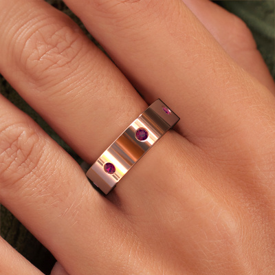 Did you know the Eternity wedding ring not only looks good, but that this wedding ring also has its own beautiful symbolical meaning? The Eternity wedding ring, with perfectly aligned smaller sized gemstones, represents your eternal love. Because the ring is pave set with gemstones, it appears to have no beginning nor end. Beautiful, wouldn't you agree? This heavy WH0105L16BP ladies wedding ring has a width of ±0.24 in and is set with rhodolite 2.4 mm. Gold represents love and therefore our goldsmith loves using it in the design of your exclusive wedding ring. We are a proud member of the Responsible Jewellery Council. This means we only use eco-friendly gold. Something we take great pride in, obviously. It is also possible to use your own gold in the design of your wedding ring. Each jewel is made by hand in our own artisan studio so we can offer this option. This gives you the opportunity to add an extra personal touch to your ring. A ring with its own history!Do you have special preferences regarding your wedding ring? For instance, a smaller or a wider band? Or perhaps a shiny or a matte ring? There are numerous variations possible. You can always discuss the possibilities with our jewellery designers. If you have certain wedding rings in mind, our designers will gladly help by drawing the rings of your dreams. Be sure to contact us!After receiving your order, our goldsmiths will passionately start the creative process of making your wedding rings in our own artisan studio. Because we do not maintain a large stockpile, we can offer our jewellery at a lower price than other jewellers. Our pricing is proof of that! We offer top quality jewels at lowest price, guaranteed.To make it easier for you, we offer a 30 day return policy. Check our terms and conditions.