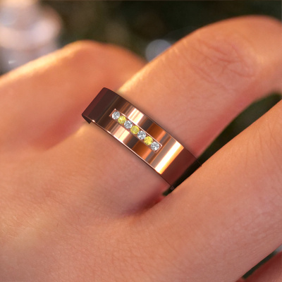 This modern ladies wedding ring is a stunning, contemporary wedding ring which truly symbolizes your unique love! Perfectly suited for men with a contemporary style. Simply customize the ring to your liking. Our goldsmith would take on any challenge of creating a perfect ring and will work on your ring, designed by you, in our own artisan studio. He will carefully and passionately create your WH0108L16BP ±0.24x0.08 in wedding ring by hand whilst using the most modern techniques, combined with pure craftsmanship. And this results in a unique, contemporary ring! This modern WH0108L16BP wedding ring is set with round yellow sapphire is ±0.24 in wide and has a shiny finish. You can choose the combination of precious metals of your preference in our online tool. Anything goes! It is wise to browse through the characteristics of each different precious metal. For example, gold and silver are softer metals. Carat is determined by the amount of added extra metals. If the goldsmith doesn't add a lot, carat is higher and the wedding ring will be softer. If he adds more metals, the jewel has a lower amount of carat. A softer precious metal can still be used for your modern wedding ring! If you prefer a precious metal which will last a lifetime, we recommend platinum. This is the most solid and durable metal our goldsmith uses.Do you have special preferences regarding your wedding ring? For instance, a smaller or a wider band? Or perhaps a shiny or a matte ring? There are numerous variations possible. You can always discuss the possibilities with our jewellery designers. If you have certain wedding rings in mind, our designers will gladly help by drawing the rings of your dreams. Be sure to contact us!After receiving your order, our goldsmiths will start the creative process of making your wedding rings. We don't keep stock. This is advantageous because these costs will not be passed on to you. Therefore, our quality wedding rings are always priced 30 percent lower than those of other jewellers.To make it easier for you, we offer a 30 day return policy. Check our terms and conditions.