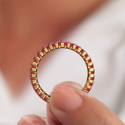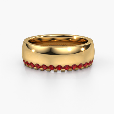 If you are looking for an exclusive, exclusive wedding ring with an exquisite look, this ring is perfect for you. Because it can be customized to your style, this wedding ring can be turned into a unique, exclusive piece of jewellery. This exclusive ladies wedding ring is a perfect combination of ancient craftsmanship, love, passion and the latest modern techniques. This exclusive WH6120L27C wedding ring is set with ruby 2 mm, is ±0.28 in wide and has a shiny finish. After ordering your wedding ring, our goldsmith will start creating your wedding ring immediately. Did you know we use the latest modern techniques, combined with ancient craftsmanship? This helps to create a 3D design of your jewel. You can order a dummy ring, if you please. This way you can check if the wedding ring meets your standard. Then, our goldsmith, who strives for perfection, will create your ring in our own artisan studio completely by hand. We feel passionate creating a unique ring each time. One which is finished to perfection. In the end, you get a wedding ring which matches your wishes.Do you have special preferences regarding your wedding ring? For instance, a smaller or a wider band? Or perhaps a shiny or a matte ring? There are numerous variations possible. You can always discuss the possibilities with our jewellery designers. If you have certain wedding rings in mind, our designers will gladly help by drawing the rings of your dreams. Be sure to contact us!After receiving your order, our goldsmiths will start the creative process of making your wedding rings in our own crafting studio. We don't keep stock. This is advantageous because these costs will not be passed on to you. Therefore, we can offer the finest quality jewellery at exceptionally low prices.To make it easier for you, we offer a 30 day return policy. Check our terms and conditions.