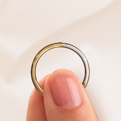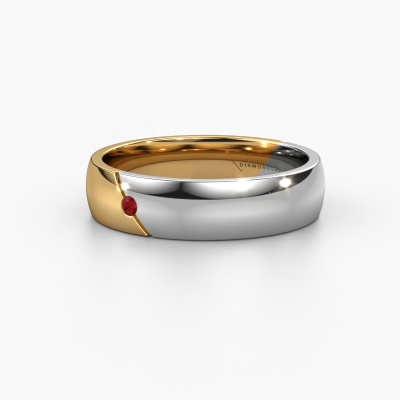 A unique two-tone gold ladies wedding ring, designed by you, and then artfully crafted by our goldsmith in our own artisan studio! A beautiful symbol, reflecting your love, which you carry with you for a lifetime! Each ring we offer is artfully forged by hand in our own crafting studio. This makes it possible for us to create you a ring which is customized to your liking, completely shiny your style. This modern WH1201L25AP wedding ring is set with ruby, is ±0.20 in wide and has a shiny finish. After designing your ring, our jewel designer will start working on it. He will make a graphic 3D design of your wedding ring. This can also be used to make a dummy ring. Simply order a dummy ring and see for yourself how your ring will turn out. Subsequently, our expert goldsmith will create your ring in our own artisan studio. We use eco-friendly gold, so you get a ring, we are proud of, which looks good inside and out. You can also send us your own gold. Because we create your ring by hand, we can use your own gold. Our goal is to create an exquisite sparkling wedding ring just as envisioned it!Do you have specific wishes? Like a shiny ring, or a matte one? A wider band, or a smaller one? The possibilities of this wedding ring are endless. Be sure to contact our designers to adjust your ring to your personal taste. Did you see a ring somewhere, or do you have some special ideas of your own? Then don't hesitate to contact our designers and discuss your ideas for your own set of beautiful wedding rings. We are up for the challenge of creating the ring exactly the way you want it!After receiving your order, our goldsmiths will start the creative process of making your wedding rings in our own crafting studio. We don't keep stock. This is advantageous because these costs will not be passed on to you. Therefore, we can offer the finest quality jewellery at exceptionally low prices.To make it easier for you, we offer a 30 day return policy. Check our terms and conditions.