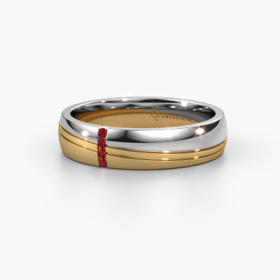 A unique two-tone gold ladies weddings ring, designed by you, and then artfully crafted by our goldsmith in our own artisan studio! A beautiful symbol, reflecting your love, which you carry with you for a lifetime! Each ring we offer is artfully forged by hand in our own crafting studio. This makes it possible for us to create you a ring which is customized to your liking, completely mat/shiny your style. This modern WH0909L25X weddings ring is set with ruby, is ±0.20 in wide and has a mat/shiny finish. Gold represents love and therefore our goldsmith loves using it in the design of your modern weddings ring. We are a proud member of the Responsible Jewellery Council. This means we only use eco-friendly gold. Something we take great pride in, obviously. It is also possible to use your own gold in the design of your weddings ring. Each jewel is made by hand in our own artisan studio so we can offer this option. This gives you the opportunity to add an extra personal touch to your ring. A ring with its own history!Do you have specific wishes regarding your weddings ring, but are you having difficulties finding the design on our website? The be sure to contact our designers! For instance, we can make the band smaller or wider. Do you prefer a matte finish? We can do that! Engravings are a great way of personalizing your rings, and applicable on most designs. Or, if you have an idea of your own for your extraordinary wedding rings, contact us! Our designers are up for the challenge of designing the ring of your dreams!After receiving your order, our goldsmiths will passionately start the creative process of making your wedding rings in our own artisan studio. Because we do not maintain a large stockpile, we can offer our jewellery at a lower price than other jewellers. Our pricing is proof of that! We offer top quality jewels at lowest price, guaranteed.To make it easier for you, we offer a 30 day return policy. Check our terms and conditions.