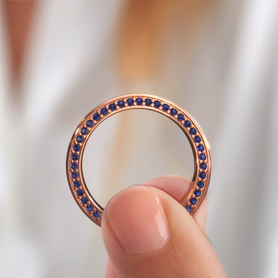 If you are looking for an exclusive, exclusive wedding ring with an exquisite look, this ring is perfect for you. Because it can be customized to your style, this wedding ring can be turned into a unique, exclusive piece of jewellery. This exclusive ladies wedding ring is a perfect combination of ancient craftsmanship, love, passion and the latest modern techniques. This exclusive WH2029AM wedding ring is set with sapphire 1.2 mm, is ±0.20 in wide and has a shiny finish. Gold represents love and therefore our goldsmith loves using it in the design of your exclusive wedding ring. We are a proud member of the Responsible Jewellery Council. This means we only use eco-friendly gold. Something we take great pride in, obviously. It is also possible to use your own gold in the design of your wedding ring. Each jewel is made by hand in our own artisan studio so we can offer this option. This gives you the opportunity to add an extra personal touch to your ring. A ring with its own history!Do you have specific wishes? Like a shiny ring, or a matte one? A wider band, or a smaller one? The possibilities of this wedding ring are endless. Be sure to contact our designers to adjust your ring to your personal taste. Did you see a ring somewhere, or do you have some special ideas of your own? Then don't hesitate to contact our designers and discuss your ideas for your own set of beautiful wedding rings. We are up for the challenge of creating the ring exactly the way you want it!After receiving your order, our goldsmiths will start the creative process of making your wedding rings in our own crafting studio. We don't keep stock. This is advantageous because these costs will not be passed on to you. Therefore, we can offer the finest quality jewellery at exceptionally low prices.To make it easier for you, we offer a 30 day return policy. Check our terms and conditions.