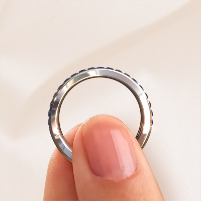 If you are looking for an exclusive, exclusive weddings ring with an exquisite look, this ring is perfect for you. Because it can be customized to your style, this weddings ring can be turned into a unique, exclusive piece of jewellery. This exclusive ladies weddings ring is a perfect combination of ancient craftsmanship, love, passion and the latest modern techniques. This exclusive WH6008L18BP weddings ring is set with sapphire 1.8 mm, is ±0.39 in wide and has a shiny finish. You can choose the combination of precious metals of your preference in our online tool. Anything goes! It is wise to browse through the characteristics of each different precious metal. For example, gold and silver are softer metals. Carat is determined by the amount of added extra metals. If the goldsmith doesn't add a lot, carat is higher and the weddings ring will be softer. If he adds more metals, the jewel has a lower amount of carat. A softer precious metal can still be used for your exclusive weddings ring! If you prefer a precious metal which will last a lifetime, we recommend platinum. This is the most solid and durable metal our goldsmith uses.Do you have special preferences regarding your weddings ring? For instance, a smaller or a wider band? Or perhaps a shiny or a matte ring? There are numerous variations possible. You can always discuss the possibilities with our jewellery designers. If you have certain wedding rings in mind, our designers will gladly help by drawing the rings of your dreams. Be sure to contact us!By combining our modern techniques with ancient crafting, we can design and customize the finest quality jewels with the utmost care for you at the best price. Our wedding rings are always priced 30% lower than those of other jewellers. We make wedding rings to order so we don't have to maintain a large stock.To make it easier for you, we offer a 30 day return policy. Check our terms and conditions.