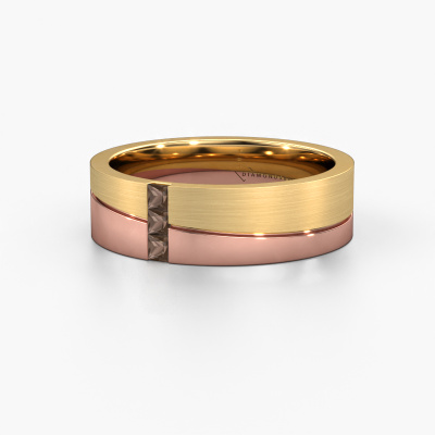 A unique two-tone rose gold ladies wedding ring, designed by you, and then artfully crafted by our goldsmith in our own artisan studio! A beautiful symbol, reflecting your love, which you carry with you for a lifetime! Each ring we offer is artfully forged by hand in our own crafting studio. This makes it possible for us to create you a ring which is customized to your liking, completely mat/shiny your style. This modern WH0906L16A wedding ring is set with smokey quartz, is ±0.24 in wide and has a mat/shiny finish. You can choose the combination of precious metals of your preference in our online tool. Anything goes! It is wise to browse through the characteristics of each different precious metal. For example, gold and silver are softer metals. Carat is determined by the amount of added extra metals. If the goldsmith doesn't add a lot, carat is higher and the wedding ring will be softer. If he adds more metals, the jewel has a lower amount of carat. A softer precious metal can still be used for your modern wedding ring! If you prefer a precious metal which will last a lifetime, we recommend platinum. This is the most solid and durable metal our goldsmith uses.Do you have special preferences regarding your wedding ring? For instance, a smaller or a wider band? Or perhaps a shiny or a matte ring? There are numerous variations possible. You can always discuss the possibilities with our jewellery designers. If you have certain wedding rings in mind, our designers will gladly help by drawing the rings of your dreams. Be sure to contact us!After receiving your order, our goldsmiths will start the creative process of making your wedding rings. We don't keep stock. This is advantageous because these costs will not be passed on to you. Therefore, our quality wedding rings are always priced 30 percent lower than those of other jewellers.To make it easier for you, we offer a 30 day return policy. Check our terms and conditions.
