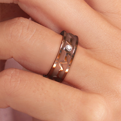 A unique wedding ring! The remarkable aspect of this ring is that you can have the heartbeat of your loved one engraved to it, expressing whom makes your heart beat faster. A beautiful engravement on a unique wedding ring. You can have part or the entire ring engraved. That is all up to you! Check our database at the bottom of this page for further instructions on how to send us your heartbeat. This unique for ladies Heartbeat 3 wedding ring has a width of ±0.24 in.