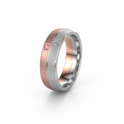 A unique two-tone rose gold ladies wedding ring, designed by you, and then artfully crafted by our goldsmith in our own artisan studio! A beautiful symbol, reflecting your love, which you carry with you for a lifetime! Each ring we offer is artfully forged by hand in our own crafting studio. This makes it possible for us to create you a ring which is customized to your liking, completely mat your style. This modern WH0250L26BM wedding ring is set with tourmaline pink, is ±0.24 in wide and has a matte finish. After designing your ring, our jewel designer will start working on it. He will make a graphic 3D design of your wedding ring. This can also be used to make a dummy ring. Simply order a dummy ring and see for yourself how your ring will turn out. Subsequently, our expert goldsmith will create your ring in our own artisan studio. We use eco-friendly gold, so you get a ring, we are proud of, which looks good inside and out. You can also send us your own gold. Because we create your ring by hand, we can use your own gold. Our goal is to create an exquisite sparkling wedding ring just as envisioned it!By the way, you can be inspired by this wedding ring and have it further adjusted to your taste. Do you prefer a smaller band or a wider one? Do you prefer a shiny ring or a matte one? Anything is possible. Also, if you have an idea of your own for extraordinary wedding rings, or if you have seen a beautiful set somewhere else that you really like and would like to have adjusted to your personal taste: no problem! don't hesitate to contact us. Our designers will gladly discuss your possibilities with you!Because we design our wedding rings ourselves, and deliver it directly to you, we can offer you wedding rings at a price you won't find anywhere else. Our rings are made to order, which helps prevent excess supplies, so we can make you a great price offer.To make it easier for you, we offer a 30 day return policy. Check our terms and conditions.