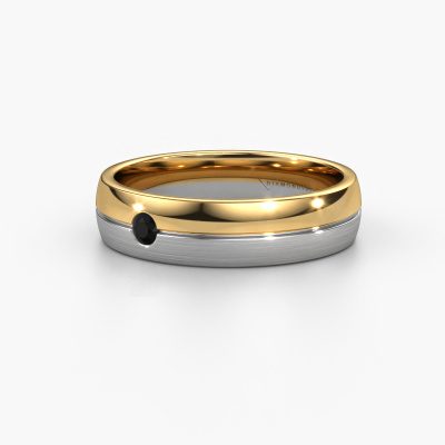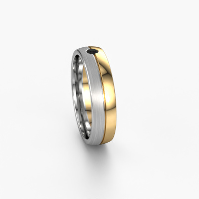 What a perfect combination of two different precious metals. They seem to reinforce each other in the modern design of this ring! Our goldsmith would be honoured to create a unique ring for you, customized to your liking. Each ladies wedding ring we offer is artfully crafted by hand in our own artisan studio. That makes it possible for us to turn modern into reality and helps create your own personal ring, customized to your style. This modern WH0201L25APM ladies wedding ring is set with round black diamond, is ±0.20 in wide and has a mat/shiny finish. Simply customize your gemstones and colours with our online tool. Our jewel designers will make a 3D drawing of your design, so you can see the result. Our goldsmiths will subsequently make your wedding ring by hand, according ancient craftsmanship. Our goal is to make the wedding ring you have in mind. A unique wedding ring to match your style completely!By the way, you can be inspired by this wedding ring and have it further adjusted to your taste. Do you prefer a smaller band or a wider one? Do you prefer a shiny ring or a matte one? Anything is possible. Also, if you have an idea of your own for extraordinary wedding rings, or if you have seen a beautiful set somewhere else that you really like and would like to have adjusted to your personal taste: no problem! don't hesitate to contact us. Our designers will gladly discuss your possibilities with you!Because we design our wedding rings ourselves, and deliver it directly to you, we can offer you wedding rings at a price you won't find anywhere else. Our rings are made to order, which helps prevent excess supplies, so we can make you a great price offer.To make it easier for you, we offer a 30 day return policy. Check our terms and conditions.