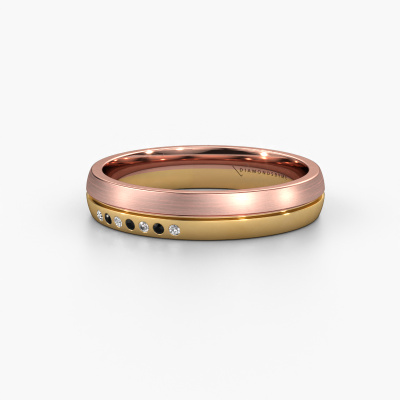 What a perfect combination of two different precious metals. They seem to reinforce each other in the trendy design of this ring! Our goldsmith would be honoured to create a unique ring for you, customized to your liking. Each ladies wedding ring we offer is artfully crafted by hand in our own artisan studio. That makes it possible for us to turn trendy into reality and helps create your own personal ring, customized to your style. This trendy WH0216L24APM ladies wedding ring is set with round black diamond, is ±0.16 in wide and has a mat/shiny finish. You can choose the combination of precious metals of your preference in our online tool. Anything goes! It is wise to browse through the characteristics of each different precious metal. For example, gold and silver are softer metals. Carat is determined by the amount of added extra metals. If the goldsmith doesn't add a lot, carat is higher and the wedding ring will be softer. If he adds more metals, the jewel has a lower amount of carat. A softer precious metal can still be used for your trendy wedding ring! If you prefer a precious metal which will last a lifetime, we recommend platinum. This is the most solid and durable metal our goldsmith uses.By the way, you can be inspired by this wedding ring and have it further adjusted to your taste. Do you prefer a smaller band or a wider one? Do you prefer a shiny ring or a matte one? Anything is possible. Also, if you have an idea of your own for extraordinary wedding rings, or if you have seen a beautiful set somewhere else that you really like and would like to have adjusted to your personal taste: no problem! don't hesitate to contact us. Our designers will gladly discuss your possibilities with you!After receiving your order, our goldsmiths will start the creative process of making your wedding rings. We don't keep stock. This is advantageous because these costs will not be passed on to you. Therefore, our quality wedding rings are always priced 30 percent lower than those of other jewellers.To make it easier for you, we offer a 30 day return policy. Check our terms and conditions.