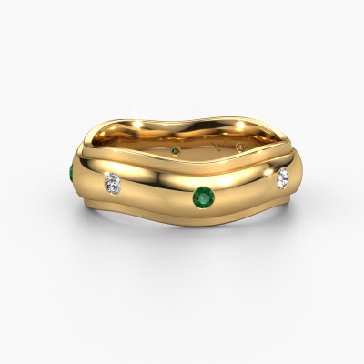 What a perfect combination of two different precious metals. They seem to reinforce each other in the modern design of this ring! Our goldsmith would be honoured to create a unique ring for you, customized to your liking. Each ladies wedding ring we offer is artfully crafted by hand in our own artisan studio. That makes it possible for us to turn modern into reality and helps create your own personal ring, customized to your style. This modern WH2051L26DP ladies wedding ring is set with round emerald, is ±0.24 in wide and has a mat/shiny finish.