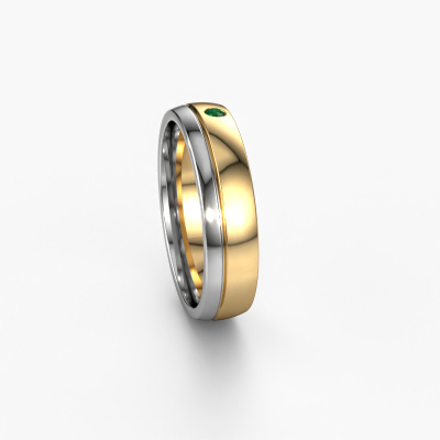 What a perfect combination of two different precious metals. They seem to reinforce each other in the modern design of this ring! Our goldsmith would be honoured to create a unique ring for you, customized to your liking. Each ladies wedding ring we offer is artfully crafted by hand in our own artisan studio. That makes it possible for us to turn modern into reality and helps create your own personal ring, customized to your style. This modern WH0301L25AP ladies wedding ring is set with round emerald, is ±0.20 in wide and has a shiny finish. After ordering your wedding ring, our goldsmith will start creating your wedding ring immediately. Did you know we use the latest modern techniques, combined with ancient craftsmanship? This helps to create a 3D design of your jewel. You can order a dummy ring, if you please. This way you can check if the wedding ring meets your standard. Then, our goldsmith, who strives for perfection, will create your ring in our own artisan studio completely by hand. We feel passionate creating a unique ring each time. One which is finished to perfection. In the end, you get a wedding ring which matches your wishes.Do you have special preferences regarding your wedding ring? For instance, a smaller or a wider band? Or perhaps a shiny or a matte ring? There are numerous variations possible. You can always discuss the possibilities with our jewellery designers. If you have certain wedding rings in mind, our designers will gladly help by drawing the rings of your dreams. Be sure to contact us!Because we design and deliver our own wedding rings, we can offer you wedding rings at a price you won't find anywhere else. A ring is made to order, which helps prevent excess supplies, so we can make you a great price offer.To make it easier for you, we offer a 30 day return policy. Check our terms and conditions.