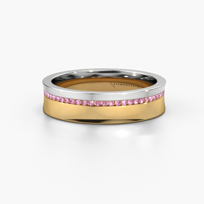 What a perfect combination of two different precious metals. They seem to reinforce each other in the modern design of this ring! Our goldsmith would be honoured to create a unique ring for you, customized to your liking. Each ladies wedding ring we offer is artfully crafted by hand in our own artisan studio. That makes it possible for us to turn modern into reality and helps create your own personal ring, customized to your style. This modern WH6090L55A ladies wedding ring is set with round pink sapphire, is ±0.20 in wide and has a shiny finish. Simply customize your gemstones and colours with our online tool. Our jewel designers will make a 3D drawing of your design, so you can see the result. Our goldsmiths will subsequently make your wedding ring by hand, according ancient craftsmanship. Our goal is to make the wedding ring you have in mind. A unique wedding ring to match your style completely!This wedding ring can also serve as a source of inspiration. Would you like the ring to have a matte or shiny finish (at no additional cost), or would you prefer it to be wider or narrower? Anything is possible. Because there are countless variations, we can’t show everything on our website. Do you have an idea for beautiful wedding rings, or have you seen a stunning set of wedding rings elsewhere? Feel free to contact us; our designers are ready to assist you.After receiving your order, our goldsmiths will start the creative process of making your wedding rings. We don't keep stock. This is advantageous because these costs will not be passed on to you. Therefore, our quality wedding rings are always priced 30 percent lower than those of other jewellers.To make it easier for you, we offer a 30 day return policy. Check our terms and conditions.