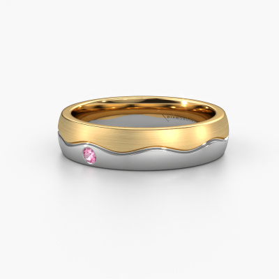 What a perfect combination of two different precious metals. They seem to reinforce each other in the fantasy design of this ring! Our goldsmith would be honoured to create a unique ring for you, customized to your liking. Each ladies wedding ring we offer is artfully crafted by hand in our own artisan studio. That makes it possible for us to turn fantasy into reality and helps create your own personal ring, customized to your style. This fantasy WH0701L25APM ladies wedding ring is set with round pink sapphire, is ±0.20 in wide and has a mat/shiny finish. Simply customize your gemstones and colours with our online tool. Our jewel designers will make a 3D drawing of your design, so you can see the result. Our goldsmiths will subsequently make your wedding ring by hand, according ancient craftsmanship. Our goal is to make the wedding ring you have in mind. A unique wedding ring to match your style completely!Do you have special preferences regarding your wedding ring? For instance, a smaller or a wider band? Or perhaps a shiny or a matte ring? There are numerous variations possible. You can always discuss the possibilities with our jewellery designers. If you have certain wedding rings in mind, our designers will gladly help by drawing the rings of your dreams. Be sure to contact us!By combining our modern techniques with ancient crafting, we can design and customize the finest quality jewels with the utmost care for you at the best price. Our wedding rings are always priced 30% lower than those of other jewellers. We make wedding rings to order so we don't have to maintain a large stock.To make it easier for you, we offer a 30 day return policy. Check our terms and conditions.