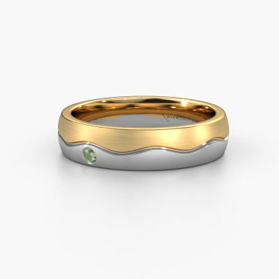 What a perfect combination of two different precious metals. They seem to reinforce each other in the fantasy design of this ring! Our goldsmith would be honoured to create a unique ring for you, customized to your liking. Each ladies wedding ring we offer is artfully crafted by hand in our own artisan studio. That makes it possible for us to turn fantasy into reality and helps create your own personal ring, customized to your style. This fantasy WH0701L25APM ladies wedding ring is set with round tourmaline green, is ±0.20 in wide and has a mat/shiny finish. Simply customize your gemstones and colours with our online tool. Our jewel designers will make a 3D drawing of your design, so you can see the result. Our goldsmiths will subsequently make your wedding ring by hand, according ancient craftsmanship. Our goal is to make the wedding ring you have in mind. A unique wedding ring to match your style completely!Do you have special preferences regarding your wedding ring? For instance, a smaller or a wider band? Or perhaps a shiny or a matte ring? There are numerous variations possible. You can always discuss the possibilities with our jewellery designers. If you have certain wedding rings in mind, our designers will gladly help by drawing the rings of your dreams. Be sure to contact us!By combining our modern techniques with ancient crafting, we can design and customize the finest quality jewels with the utmost care for you at the best price. Our wedding rings are always priced 30% lower than those of other jewellers. We make wedding rings to order so we don't have to maintain a large stock.To make it easier for you, we offer a 30 day return policy. Check our terms and conditions.