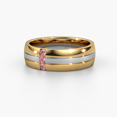 What a perfect combination of two different precious metals. They seem to reinforce each other in the modern design of this ring! Our goldsmith would be honoured to create a unique ring for you, customized to your liking. Each ladies wedding ring we offer is artfully crafted by hand in our own artisan studio. That makes it possible for us to turn modern into reality and helps create your own personal ring, customized to your style. This modern WH0426L26A ladies wedding ring is set with round tourmaline pink, is ±0.24 in wide and has a mat/shiny finish. The jewel designer, member of a specialized team, will make a graphic 3D design of your wedding ring. If it pleases you, you can also order a ring dummy so you can try it on and see your ring before creation. Subsequently, our goldsmith will create your unique wedding ring with great care in our own crafting studio. A meticulous job, because both creating as well as finishing your ring requires a keen eye. And that is what makes our craft special. Your unique wedding ring is the result of true passionate craftsmanship!Do you have special preferences regarding your wedding ring? For instance, a smaller or a wider band? Or perhaps a shiny or a matte ring? There are numerous variations possible. You can always discuss the possibilities with our jewellery designers. If you have certain wedding rings in mind, our designers will gladly help by drawing the rings of your dreams. Be sure to contact us!After receiving your order, our goldsmiths will passionately start the creative process of making your wedding rings in our own artisan studio. Because we do not maintain a large stockpile, we can offer our jewellery at a lower price than other jewellers. Our pricing is proof of that! We offer top quality jewels at lowest price, guaranteed.To make it easier for you, we offer a 30 day return policy. Check our terms and conditions.