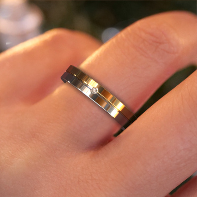 What a perfect combination of two different precious metals. They seem to reinforce each other in the modern design of this ring! Our goldsmith would be honoured to create a unique ring for you, customized to your liking. Each ladies wedding ring we offer is artfully crafted by hand in our own artisan studio. That makes it possible for us to turn modern into reality and helps create your own personal ring, customized to your style. This modern WH0201L14AP ladies wedding ring is set with round brown diamond, is ±0.16 in wide and has a shiny finish. After designing your ring, our jewel designer will start working on it. He will make a graphic 3D design of your wedding ring. This can also be used to make a dummy ring. Simply order a dummy ring and see for yourself how your ring will turn out. Subsequently, our expert goldsmith will create your ring in our own artisan studio. We use eco-friendly gold, so you get a ring, we are proud of, which looks good inside and out. You can also send us your own gold. Because we create your ring by hand, we can use your own gold. Our goal is to create an exquisite sparkling wedding ring just as envisioned it!Do you have specific wishes? Like a shiny ring, or a matte one? A wider band, or a smaller one? The possibilities of this wedding ring are endless. Be sure to contact our designers to adjust your ring to your personal taste. Did you see a ring somewhere, or do you have some special ideas of your own? Then don't hesitate to contact our designers and discuss your ideas for your own set of beautiful wedding rings. We are up for the challenge of creating the ring exactly the way you want it!After receiving your order, our goldsmiths will passionately start the creative process of making your wedding rings in our own artisan studio. Because we do not maintain a large stockpile, we can offer our jewellery at a lower price than other jewellers. Our pricing is proof of that! We offer top quality jewels at lowest price, guaranteed.To make it easier for you, we offer a 30 day return policy. Check our terms and conditions.
