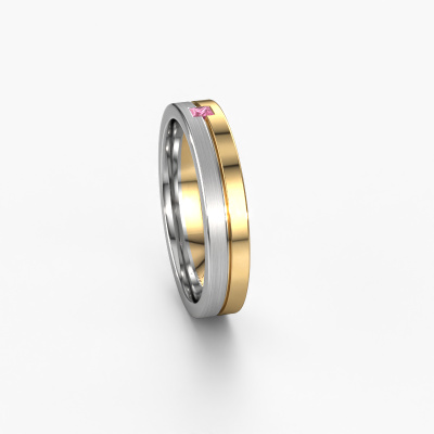 What a perfect combination of two different precious metals. They seem to reinforce each other in the traditional design of this ring! Our goldsmith would be honoured to create a unique ring for you, customized to your liking. Each ladies wedding ring we offer is artfully crafted by hand in our own artisan studio. That makes it possible for us to turn traditional into reality and helps create your own personal ring, customized to your style. This traditional WH0201L14ASQPM ladies wedding ring is set with princess pink sapphire, is ±0.16 in wide and has a mat/shiny finish. Simply customize your gemstones and colours with our online tool. Our jewel designers will make a 3D drawing of your design, so you can see the result. Our goldsmiths will subsequently make your wedding ring by hand, according ancient craftsmanship. Our goal is to make the wedding ring you have in mind. A unique wedding ring to match your style completely!This wedding ring can also serve as a source of inspiration. Would you like the ring to have a matte or shiny finish (at no additional cost), or would you prefer it to be wider or narrower? Anything is possible. Because there are countless variations, we can’t show everything on our website. Do you have an idea for beautiful wedding rings, or have you seen a stunning set of wedding rings elsewhere? Feel free to contact us; our designers are ready to assist you.After receiving your order, our goldsmiths will start the creative process of making your wedding rings. We don't keep stock. This is advantageous because these costs will not be passed on to you. Therefore, our quality wedding rings are always priced 30 percent lower than those of other jewellers.To make it easier for you, we offer a 30 day return policy. Check our terms and conditions.