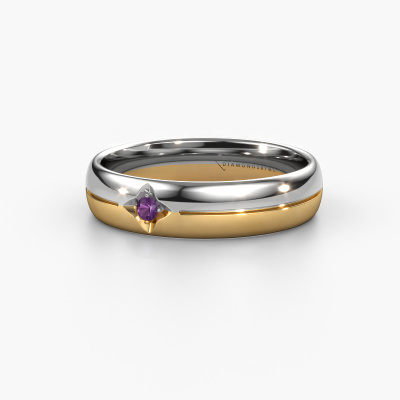 What a perfect combination of two different precious metals. They seem to reinforce each other in the contemporary design of this ring! Our goldsmith would be honoured to create a unique ring for you, customized to your liking. Each ladies wedding ring we offer is artfully crafted by hand in our own artisan studio. That makes it possible for us to turn contemporary into reality and helps create your own personal ring, customized to your style. This contemporary WH0221L35X ladies wedding ring is set with round amethyst, is ±0.20 in wide and has a shiny finish. Gold represents love and therefore our goldsmith loves using it in the design of your contemporary wedding ring. We are a proud member of the Responsible Jewellery Council. This means we only use eco-friendly gold. Something we take great pride in, obviously. It is also possible to use your own gold in the design of your wedding ring. Each jewel is made by hand in our own artisan studio so we can offer this option. This gives you the opportunity to add an extra personal touch to your ring. A ring with its own history!This wedding ring can also serve as a source of inspiration. Would you like the ring to have a matte or shiny finish (at no additional cost), or would you prefer it to be wider or narrower? Anything is possible. Because there are countless variations, we can’t show everything on our website. Do you have an idea for beautiful wedding rings, or have you seen a stunning set of wedding rings elsewhere? Feel free to contact us; our designers are ready to assist you.By combining our modern techniques with ancient crafting, we can design and customize the finest quality jewels with the utmost care for you at the best price. Our wedding rings are always priced 30% lower than those of other jewellers. We make wedding rings to order so we don't have to maintain a large stock.To make it easier for you, we offer a 30 day return policy. Check our terms and conditions.