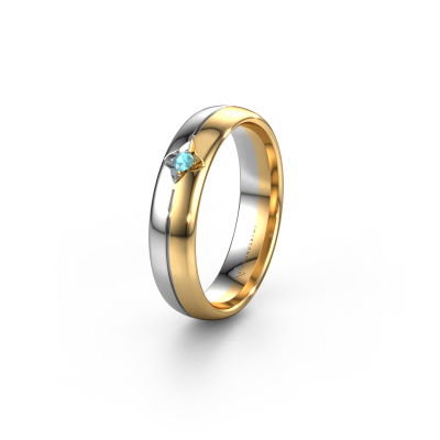 What a perfect combination of two different precious metals. They seem to reinforce each other in the contemporary design of this ring! Our goldsmith would be honoured to create a unique ring for you, customized to your liking. Each ladies wedding ring we offer is artfully crafted by hand in our own artisan studio. That makes it possible for us to turn contemporary into reality and helps create your own personal ring, customized to your style. This contemporary WH0221L35X ladies wedding ring is set with round blue topaz, is ±0.20 in wide and has a shiny finish. Gold represents love and therefore our goldsmith loves using it in the design of your contemporary wedding ring. We are a proud member of the Responsible Jewellery Council. This means we only use eco-friendly gold. Something we take great pride in, obviously. It is also possible to use your own gold in the design of your wedding ring. Each jewel is made by hand in our own artisan studio so we can offer this option. This gives you the opportunity to add an extra personal touch to your ring. A ring with its own history!This wedding ring can also serve as a source of inspiration. Would you like the ring to have a matte or shiny finish (at no additional cost), or would you prefer it to be wider or narrower? Anything is possible. Because there are countless variations, we can’t show everything on our website. Do you have an idea for beautiful wedding rings, or have you seen a stunning set of wedding rings elsewhere? Feel free to contact us; our designers are ready to assist you.By combining our modern techniques with ancient crafting, we can design and customize the finest quality jewels with the utmost care for you at the best price. Our wedding rings are always priced 30% lower than those of other jewellers. We make wedding rings to order so we don't have to maintain a large stock.To make it easier for you, we offer a 30 day return policy. Check our terms and conditions.