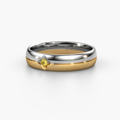 What a perfect combination of two different precious metals. They seem to reinforce each other in the contemporary design of this ring! Our goldsmith would be honoured to create a unique ring for you, customized to your liking. Each ladies wedding ring we offer is artfully crafted by hand in our own artisan studio. That makes it possible for us to turn contemporary into reality and helps create your own personal ring, customized to your style. This contemporary WH0221L35X ladies wedding ring is set with round yellow sapphire, is ±0.20 in wide and has a shiny finish. Gold represents love and therefore our goldsmith loves using it in the design of your contemporary wedding ring. We are a proud member of the Responsible Jewellery Council. This means we only use eco-friendly gold. Something we take great pride in, obviously. It is also possible to use your own gold in the design of your wedding ring. Each jewel is made by hand in our own artisan studio so we can offer this option. This gives you the opportunity to add an extra personal touch to your ring. A ring with its own history!This wedding ring can also serve as a source of inspiration. Would you like the ring to have a matte or shiny finish (at no additional cost), or would you prefer it to be wider or narrower? Anything is possible. Because there are countless variations, we can’t show everything on our website. Do you have an idea for beautiful wedding rings, or have you seen a stunning set of wedding rings elsewhere? Feel free to contact us; our designers are ready to assist you.By combining our modern techniques with ancient crafting, we can design and customize the finest quality jewels with the utmost care for you at the best price. Our wedding rings are always priced 30% lower than those of other jewellers. We make wedding rings to order so we don't have to maintain a large stock.To make it easier for you, we offer a 30 day return policy. Check our terms and conditions.