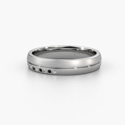 What a perfect combination of two different precious metals. They seem to reinforce each other in the trendy design of this ring! Our goldsmith would be honoured to create a unique ring for you, customized to your liking. Each ladies wedding ring we offer is artfully crafted by hand in our own artisan studio. That makes it possible for us to turn trendy into reality and helps create your own personal ring, customized to your style. This trendy WH0216L24APM ladies wedding ring is set with round black diamond, is ±0.16 in wide and has a mat/shiny finish. You can choose the combination of precious metals of your preference in our online tool. Anything goes! It is wise to browse through the characteristics of each different precious metal. For example, gold and silver are softer metals. Carat is determined by the amount of added extra metals. If the goldsmith doesn't add a lot, carat is higher and the wedding ring will be softer. If he adds more metals, the jewel has a lower amount of carat. A softer precious metal can still be used for your trendy wedding ring! If you prefer a precious metal which will last a lifetime, we recommend platinum. This is the most solid and durable metal our goldsmith uses.By the way, you can be inspired by this wedding ring and have it further adjusted to your taste. Do you prefer a smaller band or a wider one? Do you prefer a shiny ring or a matte one? Anything is possible. Also, if you have an idea of your own for extraordinary wedding rings, or if you have seen a beautiful set somewhere else that you really like and would like to have adjusted to your personal taste: no problem! don't hesitate to contact us. Our designers will gladly discuss your possibilities with you!After receiving your order, our goldsmiths will start the creative process of making your wedding rings. We don't keep stock. This is advantageous because these costs will not be passed on to you. Therefore, our quality wedding rings are always priced 30 percent lower than those of other jewellers.To make it easier for you, we offer a 30 day return policy. Check our terms and conditions.
