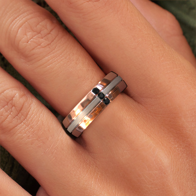 What a perfect combination of two different precious metals. They seem to reinforce each other in the modern design of this ring! Our goldsmith would be honoured to create a unique ring for you, customized to your liking. Each ladies wedding ring we offer is artfully crafted by hand in our own artisan studio. That makes it possible for us to turn modern into reality and helps create your own personal ring, customized to your style. This modern WH0426L26A ladies wedding ring is set with round black diamond, is ±0.24 in wide and has a mat/shiny finish. The jewel designer, member of a specialized team, will make a graphic 3D design of your wedding ring. If it pleases you, you can also order a ring dummy so you can try it on and see your ring before creation. Subsequently, our goldsmith will create your unique wedding ring with great care in our own crafting studio. A meticulous job, because both creating as well as finishing your ring requires a keen eye. And that is what makes our craft special. Your unique wedding ring is the result of true passionate craftsmanship!Do you have special preferences regarding your wedding ring? For instance, a smaller or a wider band? Or perhaps a shiny or a matte ring? There are numerous variations possible. You can always discuss the possibilities with our jewellery designers. If you have certain wedding rings in mind, our designers will gladly help by drawing the rings of your dreams. Be sure to contact us!After receiving your order, our goldsmiths will passionately start the creative process of making your wedding rings in our own artisan studio. Because we do not maintain a large stockpile, we can offer our jewellery at a lower price than other jewellers. Our pricing is proof of that! We offer top quality jewels at lowest price, guaranteed.To make it easier for you, we offer a 30 day return policy. Check our terms and conditions.