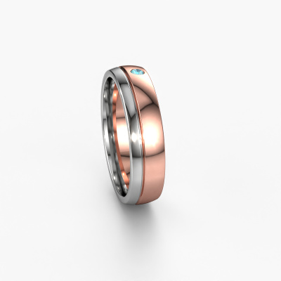 What a perfect combination of two different precious metals. They seem to reinforce each other in the modern design of this ring! Our goldsmith would be honoured to create a unique ring for you, customized to your liking. Each ladies wedding ring we offer is artfully crafted by hand in our own artisan studio. That makes it possible for us to turn modern into reality and helps create your own personal ring, customized to your style. This modern WH0301L25AP ladies wedding ring is set with round blue topaz, is ±0.20 in wide and has a shiny finish. After ordering your wedding ring, our goldsmith will start creating your wedding ring immediately. Did you know we use the latest modern techniques, combined with ancient craftsmanship? This helps to create a 3D design of your jewel. You can order a dummy ring, if you please. This way you can check if the wedding ring meets your standard. Then, our goldsmith, who strives for perfection, will create your ring in our own artisan studio completely by hand. We feel passionate creating a unique ring each time. One which is finished to perfection. In the end, you get a wedding ring which matches your wishes.Do you have special preferences regarding your wedding ring? For instance, a smaller or a wider band? Or perhaps a shiny or a matte ring? There are numerous variations possible. You can always discuss the possibilities with our jewellery designers. If you have certain wedding rings in mind, our designers will gladly help by drawing the rings of your dreams. Be sure to contact us!Because we design and deliver our own wedding rings, we can offer you wedding rings at a price you won't find anywhere else. A ring is made to order, which helps prevent excess supplies, so we can make you a great price offer.To make it easier for you, we offer a 30 day return policy. Check our terms and conditions.