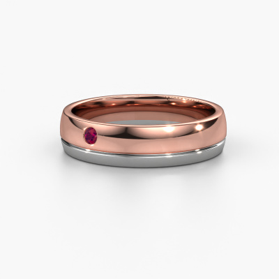 What a perfect combination of two different precious metals. They seem to reinforce each other in the modern design of this ring! Our goldsmith would be honoured to create a unique ring for you, customized to your liking. Each ladies wedding ring we offer is artfully crafted by hand in our own artisan studio. That makes it possible for us to turn modern into reality and helps create your own personal ring, customized to your style. This modern WH0301L25AP ladies wedding ring is set with round rhodolite, is ±0.20 in wide and has a shiny finish. After ordering your wedding ring, our goldsmith will start creating your wedding ring immediately. Did you know we use the latest modern techniques, combined with ancient craftsmanship? This helps to create a 3D design of your jewel. You can order a dummy ring, if you please. This way you can check if the wedding ring meets your standard. Then, our goldsmith, who strives for perfection, will create your ring in our own artisan studio completely by hand. We feel passionate creating a unique ring each time. One which is finished to perfection. In the end, you get a wedding ring which matches your wishes.Do you have special preferences regarding your wedding ring? For instance, a smaller or a wider band? Or perhaps a shiny or a matte ring? There are numerous variations possible. You can always discuss the possibilities with our jewellery designers. If you have certain wedding rings in mind, our designers will gladly help by drawing the rings of your dreams. Be sure to contact us!Because we design and deliver our own wedding rings, we can offer you wedding rings at a price you won't find anywhere else. A ring is made to order, which helps prevent excess supplies, so we can make you a great price offer.To make it easier for you, we offer a 30 day return policy. Check our terms and conditions.