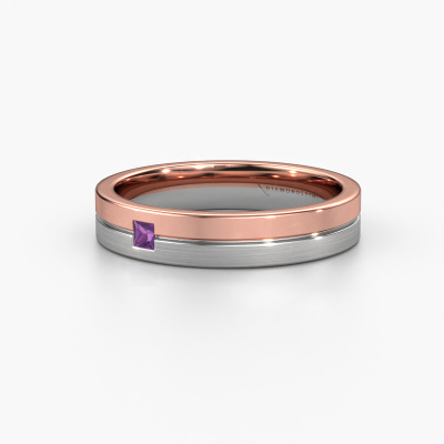 What a perfect combination of two different precious metals. They seem to reinforce each other in the traditional design of this ring! Our goldsmith would be honoured to create a unique ring for you, customized to your liking. Each ladies wedding ring we offer is artfully crafted by hand in our own artisan studio. That makes it possible for us to turn traditional into reality and helps create your own personal ring, customized to your style. This traditional WH0201L14ASQPM ladies wedding ring is set with princess amethyst, is ±0.16 in wide and has a mat/shiny finish. Simply customize your gemstones and colours with our online tool. Our jewel designers will make a 3D drawing of your design, so you can see the result. Our goldsmiths will subsequently make your wedding ring by hand, according ancient craftsmanship. Our goal is to make the wedding ring you have in mind. A unique wedding ring to match your style completely!This wedding ring can also serve as a source of inspiration. Would you like the ring to have a matte or shiny finish (at no additional cost), or would you prefer it to be wider or narrower? Anything is possible. Because there are countless variations, we can’t show everything on our website. Do you have an idea for beautiful wedding rings, or have you seen a stunning set of wedding rings elsewhere? Feel free to contact us; our designers are ready to assist you.After receiving your order, our goldsmiths will start the creative process of making your wedding rings. We don't keep stock. This is advantageous because these costs will not be passed on to you. Therefore, our quality wedding rings are always priced 30 percent lower than those of other jewellers.To make it easier for you, we offer a 30 day return policy. Check our terms and conditions.
