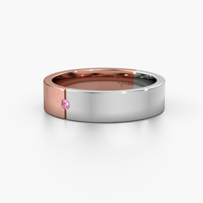 What a perfect combination of two different precious metals. They seem to reinforce each other in the modern design of this ring! Our goldsmith would be honoured to create a unique ring for you, customized to your liking. Each ladies friendship ring we offer is artfully crafted by hand in our own artisan studio. That makes it possible for us to turn modern into reality and helps create your own personal ring, customized to your style. This modern WH1101L15AP ladies friendship ring is set with round pink sapphire, is ±0.20 in wide and has a shiny finish. After ordering your friendship ring, our goldsmith will start creating your friendship ring immediately. Did you know we use the latest modern techniques, combined with ancient craftsmanship? This helps to create a 3D design of your jewel. You can order a dummy ring, if you please. This way you can check if the friendship ring meets your standard. Then, our goldsmith, who strives for perfection, will create your ring in our own artisan studio completely by hand. We feel passionate creating a unique ring each time. One which is finished to perfection. In the end, you get a friendship ring which matches your wishes.By the way, you can be inspired by this friendship ring and have it further adjusted to your taste. Do you prefer a smaller band or a wider one? Do you prefer a shiny ring or a matte one? Anything is possible. Also, if you have an idea of your own for extraordinary friendship rings, or if you have seen a beautiful set somewhere else that you really like and would like to have adjusted to your personal taste: no problem! don't hesitate to contact us. Our designers will gladly discuss your possibilities with you!Because we design and deliver our own friendship rings, we can offer you friendship rings at a price you won't find anywhere else. A ring is made to order, which helps prevent excess supplies, so we can make you a great price offer.To make it easier for you, we offer a 30 day return policy. Check our terms and conditions.