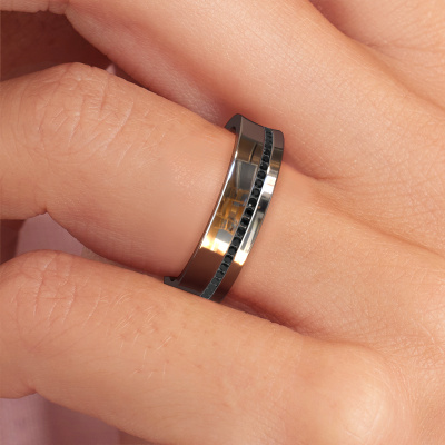 What a perfect combination of two different precious metals. They seem to reinforce each other in the modern design of this ring! Our goldsmith would be honoured to create a unique ring for you, customized to your liking. Each ladies wedding ring we offer is artfully crafted by hand in our own artisan studio. That makes it possible for us to turn modern into reality and helps create your own personal ring, customized to your style. This modern WH6090L55A ladies wedding ring is set with round black diamond, is ±0.20 in wide and has a shiny finish. Simply customize your gemstones and colours with our online tool. Our jewel designers will make a 3D drawing of your design, so you can see the result. Our goldsmiths will subsequently make your wedding ring by hand, according ancient craftsmanship. Our goal is to make the wedding ring you have in mind. A unique wedding ring to match your style completely!This wedding ring can also serve as a source of inspiration. Would you like the ring to have a matte or shiny finish (at no additional cost), or would you prefer it to be wider or narrower? Anything is possible. Because there are countless variations, we can’t show everything on our website. Do you have an idea for beautiful wedding rings, or have you seen a stunning set of wedding rings elsewhere? Feel free to contact us; our designers are ready to assist you.After receiving your order, our goldsmiths will start the creative process of making your wedding rings. We don't keep stock. This is advantageous because these costs will not be passed on to you. Therefore, our quality wedding rings are always priced 30 percent lower than those of other jewellers.To make it easier for you, we offer a 30 day return policy. Check our terms and conditions.