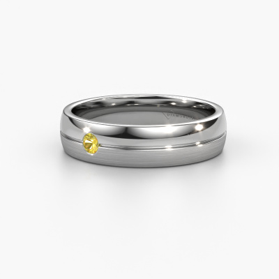 What a perfect combination of two different precious metals. They seem to reinforce each other in the modern design of this ring! Our goldsmith would be honoured to create a unique ring for you, customized to your liking. Each ladies wedding ring we offer is artfully crafted by hand in our own artisan studio. That makes it possible for us to turn modern into reality and helps create your own personal ring, customized to your style. This modern WH0201L25APM ladies wedding ring is set with round yellow sapphire, is ±0.20 in wide and has a mat/shiny finish. Simply customize your gemstones and colours with our online tool. Our jewel designers will make a 3D drawing of your design, so you can see the result. Our goldsmiths will subsequently make your wedding ring by hand, according ancient craftsmanship. Our goal is to make the wedding ring you have in mind. A unique wedding ring to match your style completely!By the way, you can be inspired by this wedding ring and have it further adjusted to your taste. Do you prefer a smaller band or a wider one? Do you prefer a shiny ring or a matte one? Anything is possible. Also, if you have an idea of your own for extraordinary wedding rings, or if you have seen a beautiful set somewhere else that you really like and would like to have adjusted to your personal taste: no problem! don't hesitate to contact us. Our designers will gladly discuss your possibilities with you!Because we design our wedding rings ourselves, and deliver it directly to you, we can offer you wedding rings at a price you won't find anywhere else. Our rings are made to order, which helps prevent excess supplies, so we can make you a great price offer.To make it easier for you, we offer a 30 day return policy. Check our terms and conditions.