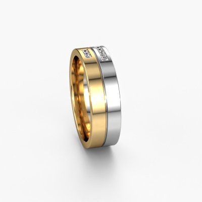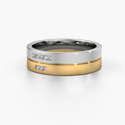 What a perfect combination of two different precious metals. They seem to reinforce each other in the modern design of this ring! Our goldsmith would be honoured to create a unique ring for you, customized to your liking. Each ladies wedding ring we offer is artfully crafted by hand in our own artisan studio. That makes it possible for us to turn modern into reality and helps create your own personal ring, customized to your style. This modern WH0207L16AP ladies wedding ring is set with round lab grown diamond, is ±0.24 in wide and has a shiny finish.