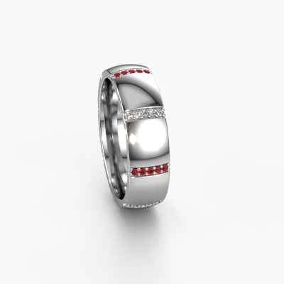 This modern ladies wedding ring is a stunning, contemporary wedding ring which truly symbolizes your unique love! Perfectly suited for men with a contemporary style. Simply customize the ring to your liking. Our goldsmith would take on any challenge of creating a perfect ring and will work on your ring, designed by you, in our own artisan studio. He will carefully and passionately create your WH2124L26B ±0.24x0.08 in wedding ring by hand whilst using the most modern techniques, combined with pure craftsmanship. And this results in a unique, contemporary ring! This modern WH2124L26B wedding ring is set with round ruby is ±0.24 in wide and has a shiny finish. Simply customize your gemstones and colours with our online tool. Our jewel designers will make a 3D drawing of your design, so you can see the result. Our goldsmiths will subsequently make your wedding ring by hand, according ancient craftsmanship. Our goal is to make the wedding ring you have in mind. A unique wedding ring to match your style completely!This wedding ring can also serve as a source of inspiration. Would you like the ring to have a matte or shiny finish (at no additional cost), or would you prefer it to be wider or narrower? Anything is possible. Because there are countless variations, we can’t show everything on our website. Do you have an idea for beautiful wedding rings, or have you seen a stunning set of wedding rings elsewhere? Feel free to contact us; our designers are ready to assist you.After receiving your order, our goldsmiths will start the creative process of making your wedding rings in our own crafting studio. We don't keep stock. This is advantageous because these costs will not be passed on to you. Therefore, we can offer the finest quality jewellery at exceptionally low prices.To make it easier for you, we offer a 30 day return policy. Check our terms and conditions.