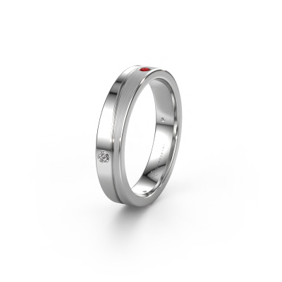 This fashionable ladies wedding ring is a stunning, contemporary wedding ring which truly symbolizes your unique love! Perfectly suited for men with a contemporary style. Simply customize the ring to your liking. Our goldsmith would take on any challenge of creating a perfect ring and will work on your ring, designed by you, in our own artisan studio. He will carefully and passionately create your WH0901L14APM ±0.16x0.07 in wedding ring by hand whilst using the most modern techniques, combined with pure craftsmanship. And this results in a unique, contemporary ring! This fashionable WH0901L14APM wedding ring is set with round ruby is ±0.16 in wide and has a mat/shiny finish. You can choose the combination of precious metals of your preference in our online tool. Anything goes! It is wise to browse through the characteristics of each different precious metal. For example, gold and silver are softer metals. Carat is determined by the amount of added extra metals. If the goldsmith doesn't add a lot, carat is higher and the wedding ring will be softer. If he adds more metals, the jewel has a lower amount of carat. A softer precious metal can still be used for your fashionable wedding ring! If you prefer a precious metal which will last a lifetime, we recommend platinum. This is the most solid and durable metal our goldsmith uses.Be inspired by our designs, and adjust this wedding ring to your own personal taste: wider or smaller, shiny or matte? No problem! Even if you have ideas of your own for special wedding rings, our jewellery designers are lined up to help you design the ring of your dreams. don't hesitate to contact us!After receiving your order, our goldsmiths will start the creative process of making your wedding rings. We don't keep stock. This is advantageous because these costs will not be passed on to you. Therefore, our quality wedding rings are always priced 30 percent lower than those of other jewellers.To make it easier for you, we offer a 30 day return policy. Check our terms and conditions.